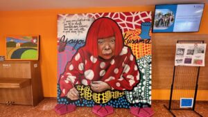 Yayoi Kusama és una artista de 96 anys que, des dels anys setanta, resideix voluntàriament en un centre de salut mental al Japó. Al llarg de la seva trajectòria ha utilitzat l’art per donar forma a la seva lluita amb la salut mental, trobant-hi un espai de cura i d’expressió. Aquesta relació amb la creativitat l’ha convertida en una de les artistes japoneses més influents del segle XX, amb un impacte que ha influenciat a figures com Andy Warhol o Claes Oldenburg.